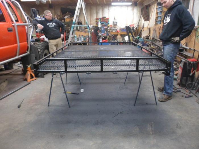 The basket is make out of 1" rectangular tubing and expanded metal. I have 4, 4" 55W spot lights mounted to the front. I'll see how I like them and adjust the output / beam as necessary.