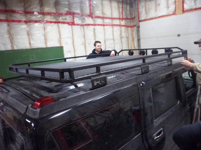 It took two of us 10 hours to build and paint the basket and then took four of us about 15 minutes to get it up and bolted to the roof.